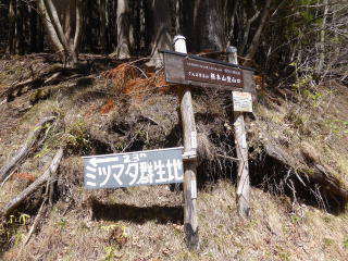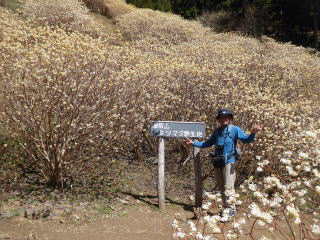ミツマタ群生地手前の駐車スペース(9:45) → (10:15)屋敷山ミツマタ群生地(10:45) → (11:00)駐車スペース